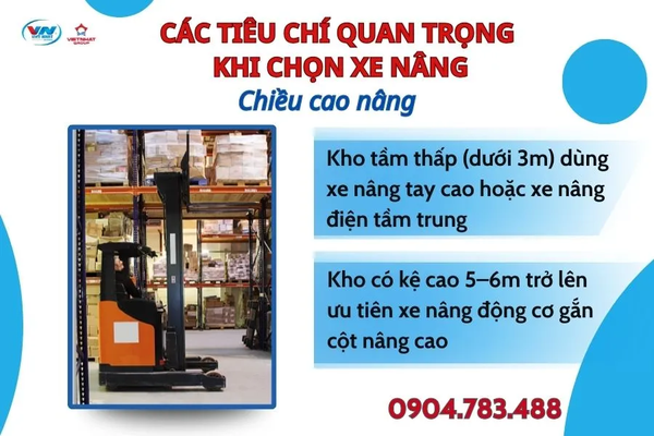 Nếu chỉ nâng trong kho tầm thấp (dưới 3m) → dùng xe nâng tay cao hoặc xe nâng điện tầm trung.