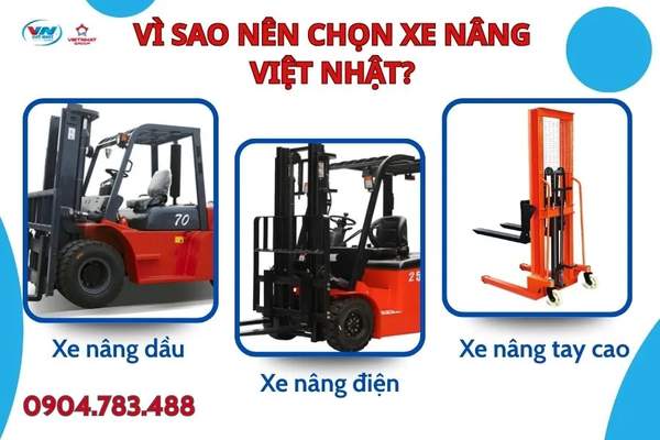 Xe Nâng Việt Nhật cung cấp đa dạng dòng xe nâng điện, xe nâng dầu, xe nâng tay và thiết bị nâng hạ chuyên dụng, đáp ứng mọi nhu cầu từ kho bãi đến công trường. Sản phẩm chính hãng, dịch vụ bảo hành – bảo trì chuyên nghiệp, giao hàng nhanh trên toàn quốc.