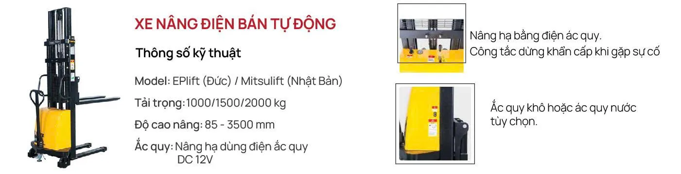 Xe nâng bằng điện – di chuyển bằng tay, mang lại sự tiện lợi, nhanh chóng mà vẫn tiết kiệm chi phí đầu tư so với xe nâng điện hoàn toàn. Dòng xe này phù hợp với: