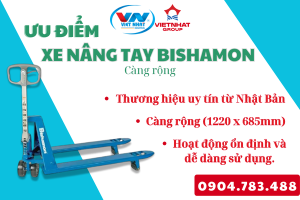 Xe nâng tay 3 tấn Bishamon càng rộng tại Xe nâng Việt Nhật