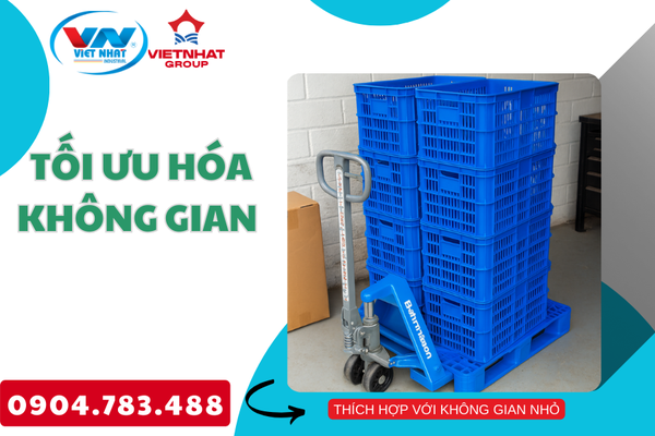 Tối ưu hóa không gian: Nhờ kích thước nhỏ, xe nâng tay không chiếm quá nhiều không gian lưu trữ, giúp tiết kiệm diện tích và tăng hiệu quả sử dụng không gian.