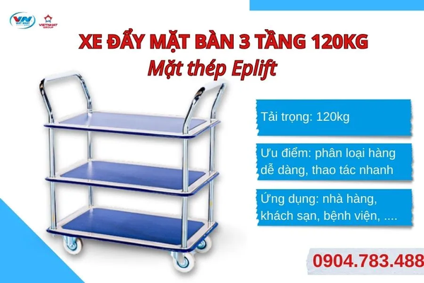 1.2 Xe đẩy mặt bàn thép 3 tầng 120kg