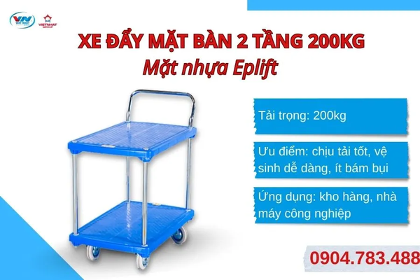 1.1 Xe đẩy mặt bàn 200kg – Mặt nhựa Eplift