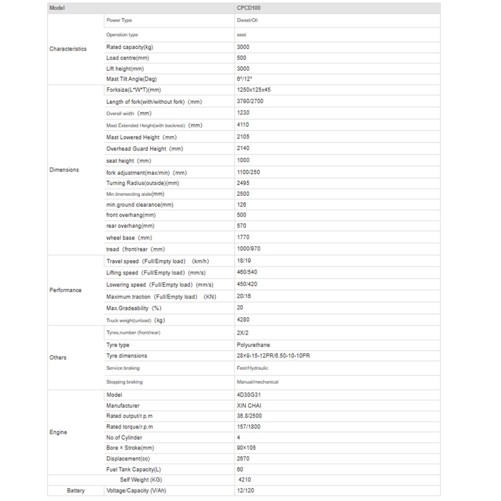 Thông số kỹ thuật xe nâng dầu CPCD100