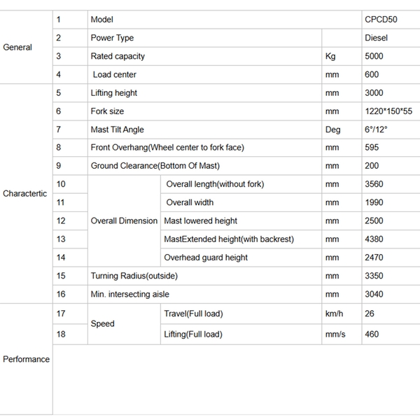 1. Thông số kỹ thuật Xe Nâng Dầu CPCD50