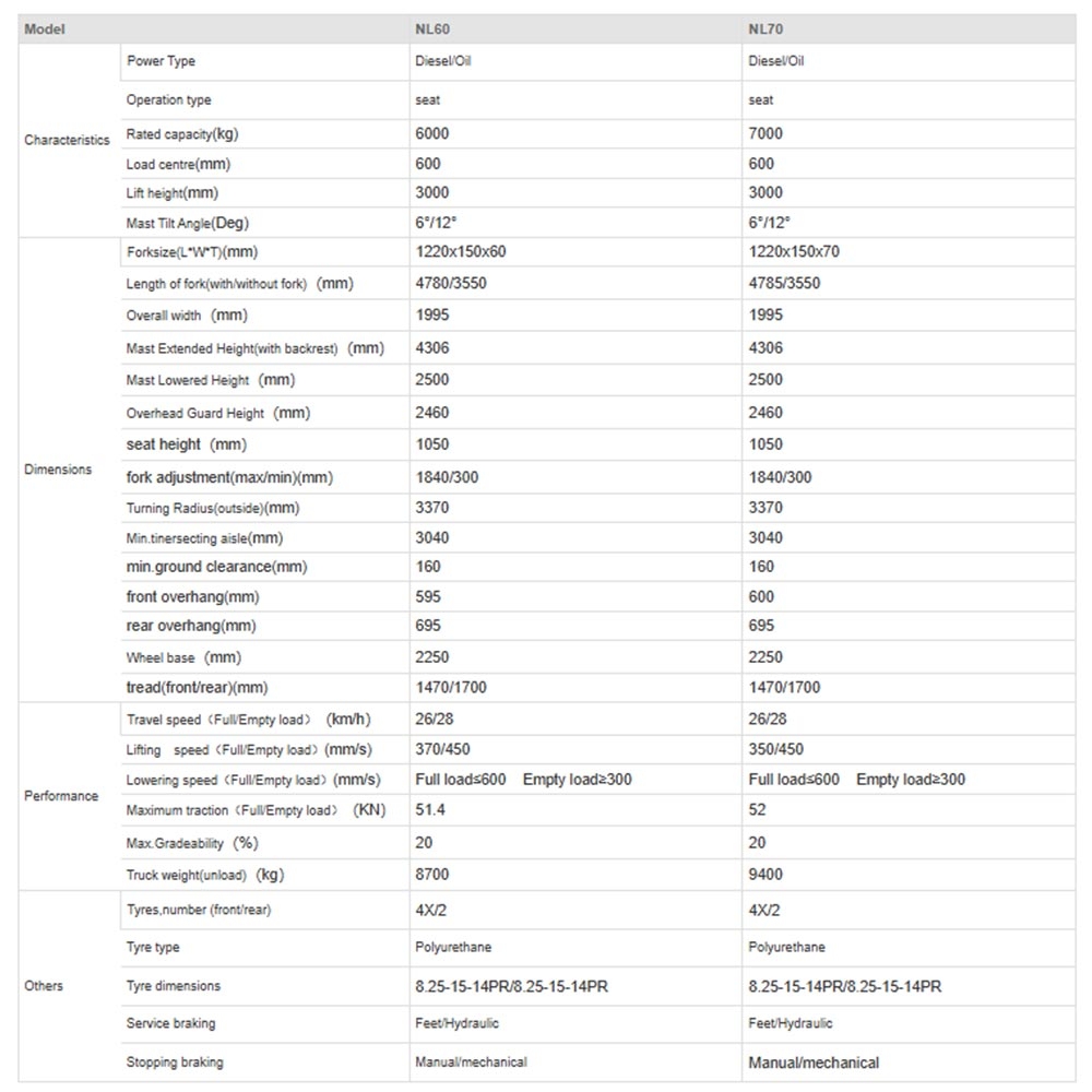 Thông số kỹ thuật xe nâng dầu CPCD60-70